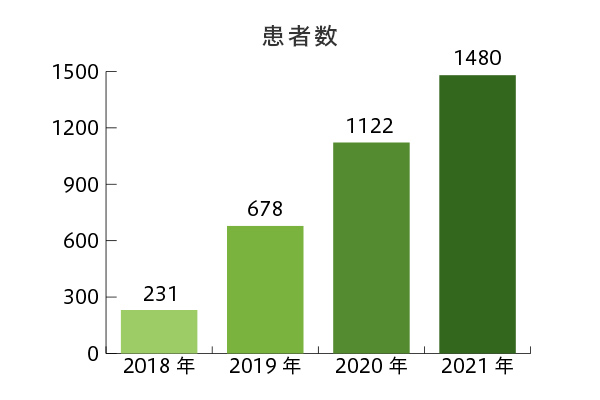 開院から4年目ですが患者数が約6倍にまで増加しております。