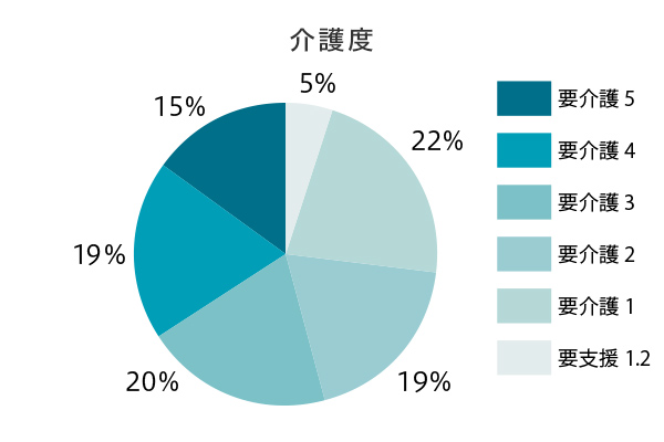 要支援が5%に対し、要介護が多いため介護度の高い方が多いのが現状です。
